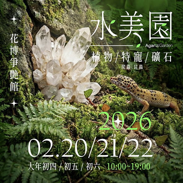 活動集結植物園藝品牌、特寵(爬蟲、昆蟲) 展示單位與礦石收藏與創作者,讓參觀者近距離感受生命的樣貌與自然能量。 無論是植物愛好者、特寵飼主、礦石收藏者,或想在春節放慢腳步的人,都能在水美園找到屬於自己的停留方式。 水美園融合展售、市集、餐飲休閒,讓人在輕鬆流動的空間中,與自然重新建立連結,2026 春節邀你走進自然,也歡迎帶著自己的萌寵於此再次相聚。